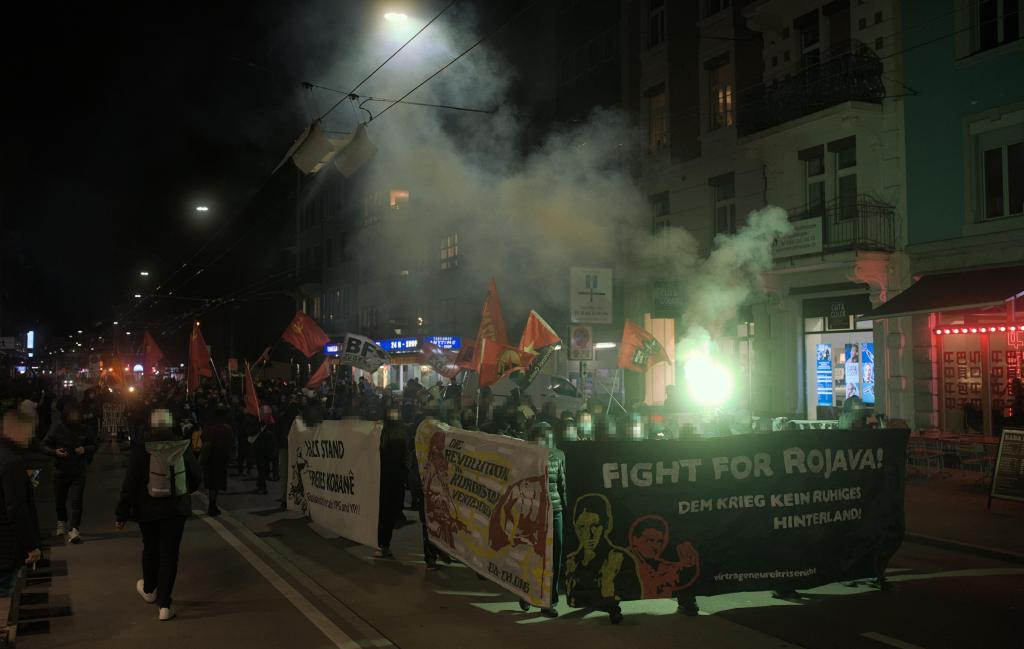 Gestern Abend nahmen sich über 400 Internationalist:innen die Strassen Zürichs in Solidarität mit dem revolutionären Projekt in Nordostsyrien, mit Rojava. Die Lage in Rojava ist alles andere als ruhig zurzeit und entsprechend wollten wir auch die Stille hier in Zürich durchbrechen. Die SNA und der türkische Faschismus greifen weiterhin an, sei es beim Tişrîn-Damm oder der Karakozak Brücke. Sei es über Bodenangriffe oder aus der Luft. Der Krieg entwickelt sich Tag für Tag weiter, ein Ende ist bislang noch nicht in Sicht. Doch ein Krieg hat immer verschiedene Parteien. Und so sind es auch die revolutionären Kräfte in Rojava, die dem Gegner nicht nur standhalten, sondern immer wieder auch eigene, erfolgreiche Operationen durchführen. Insbesondere die neuste Fähigkeit selbst den Luftraum mit Drohnen zu nutzen, ist hierbei hervorzuheben. Dies zeigt, dass sich unsere Freund:innen stets weiterentwickeln, nie stehen bleiben und Rojava mit allen Mitteln verteidigen.