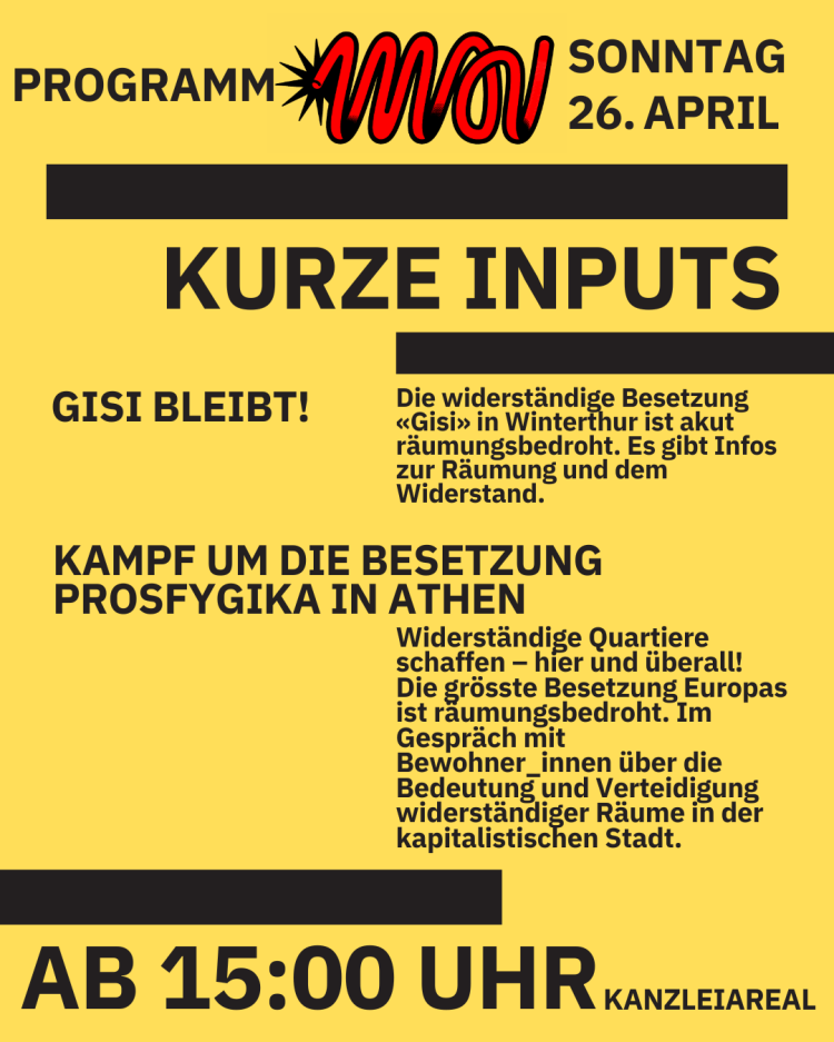 Die widerständige Besetzung «Gisi» in Winterthur ist akut räumungsbedroht. Es gibt Infos zur Räumung und dem Widerstand.